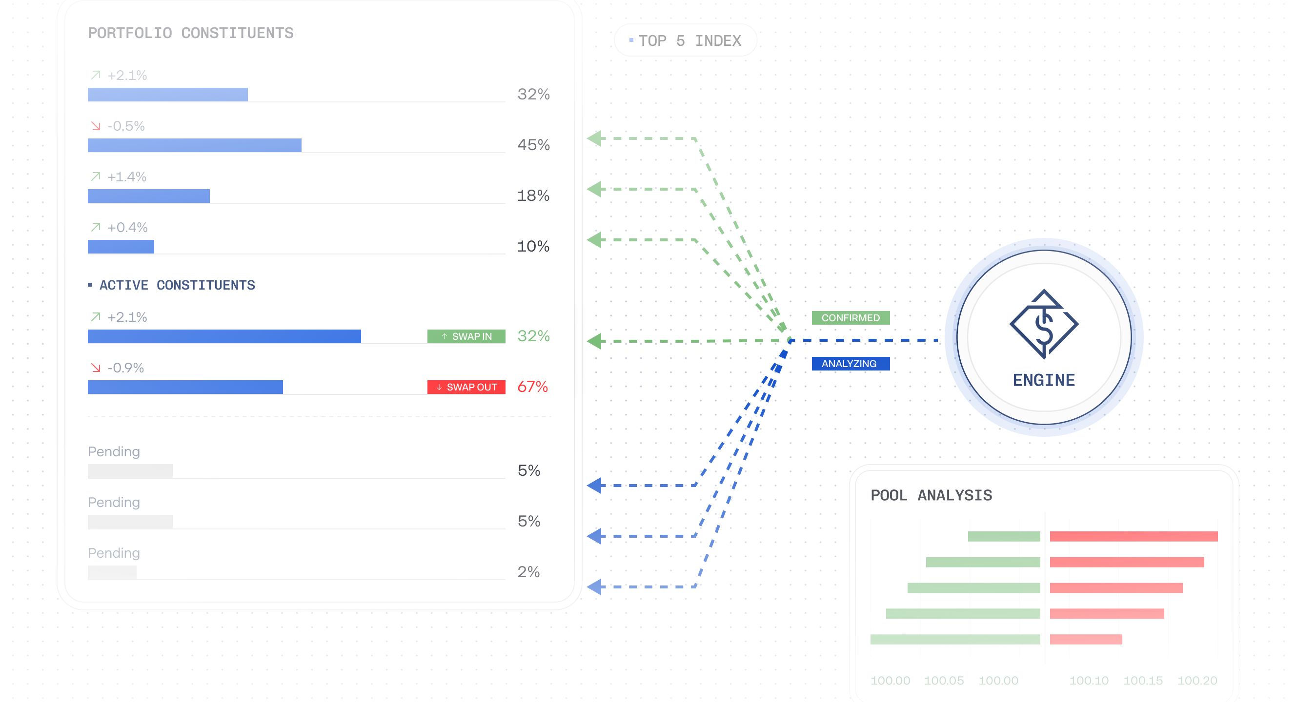 Beyond time savings, TrustedStake's proprietary trading engine and rebalancer system actively maximizes your returns through: